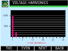 Pantalla de armónicos de voltaje y corriente