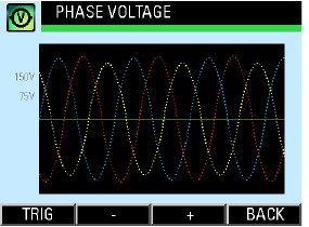 Pantalla de forma de onda de voltaje y corriente