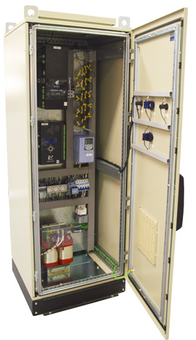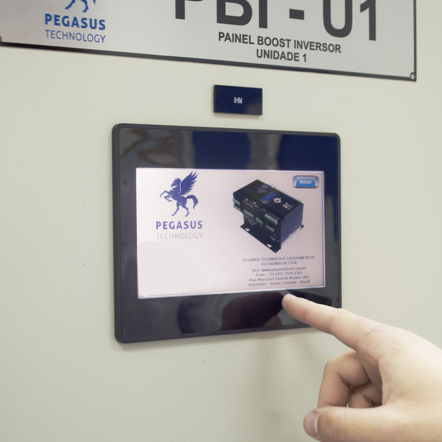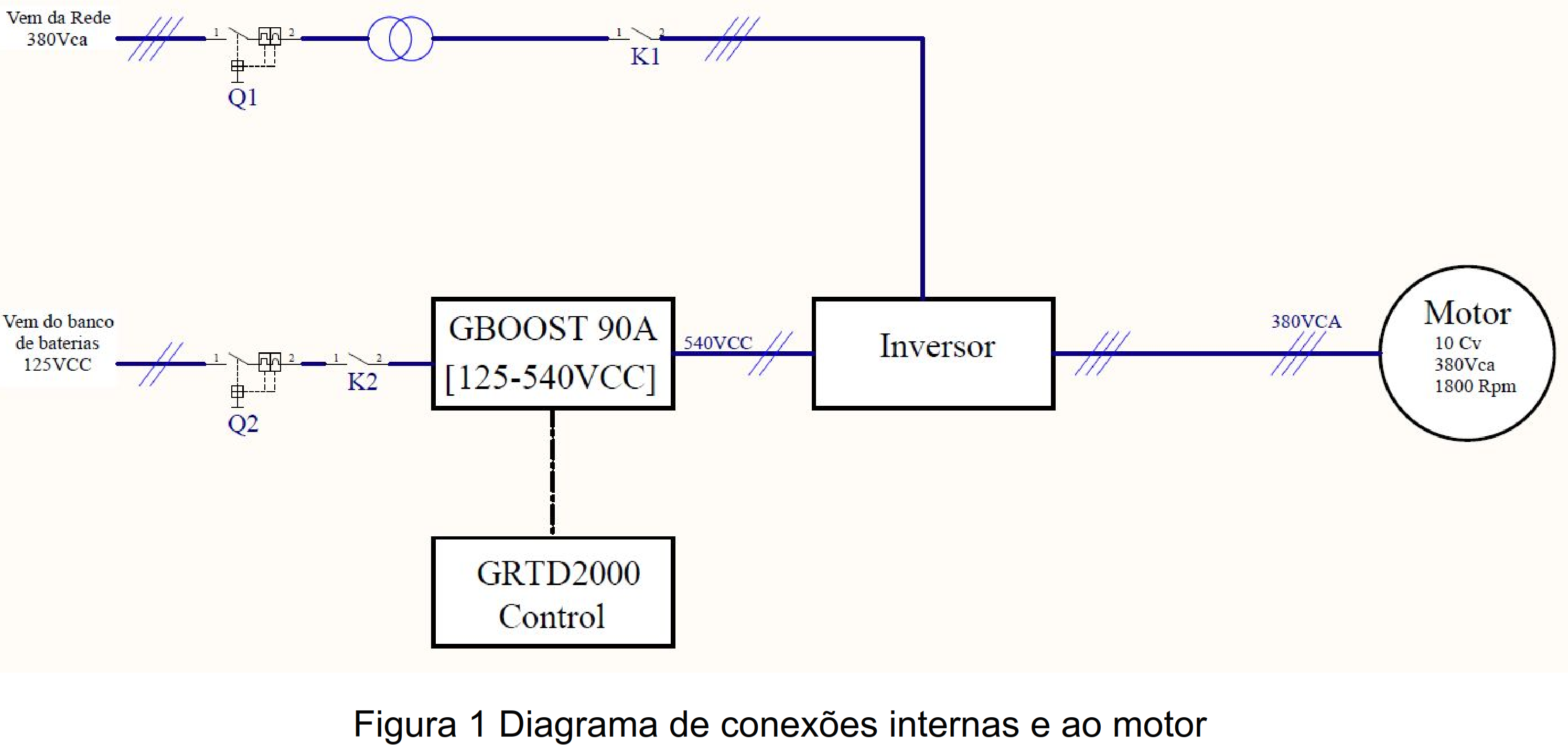 El panel Boost Inverter fue diseñado para la aplicación de lubricación de cojinetes en plantas hidroeléctricas teniendo como función principal el mantenimiento del suministro de los motores de los cojinetes. Su principal funcionalidad es mantener los motores encendidos incluso cuando hay un corte de energía en el servicio auxiliar que normalmente alimenta estos motores. En general, el panel está equipado con la última tecnología y componentes para el control y conmutación de fabricación PEGASUS, el panel está alimentado por una fuente de voltaje trifásico de 380V 60Hz y un voltaje de un banco de baterías de 125V, el panel tiene un paso con un Boost convertidor (elevador) que eleva la tensión del banco de baterías para aplicar al convertidor de frecuencia y la tensión de 380V 60Hz se rectifica y aplica en paralelo con la salida del convertidor Boost, llevando la potencia a la frecuencia del convertidor. El Panel Boost Inverter está configurado inteligentemente para que durante el funcionamiento, con suministro de 380V 60Hz presente, no haya consumo de corriente del banco de baterías y si hay una caída en el suministro de 380V 60Hz, el sistema abrirá un contactor abriendo el suministro Manteniendo el inversor fuente de alimentación a través de la fuente de 125V. Para el desarrollo de materiales de soporte (esquemas de conexión y características eléctricas) de este En el manual consideramos trabajar con un motor de 10CV, sin embargo, el panel se puede personalizar según la potencia del motor a conducir.